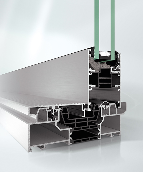 Das Schüco Schiebe- und Hebeschiebesystem ASE 80.HI verbindet die Vorteile des Werkstoffes Aluminium mit zukunftsweisender Wärmedämmung auf Passivhausniveau für nachhaltige Architektur.